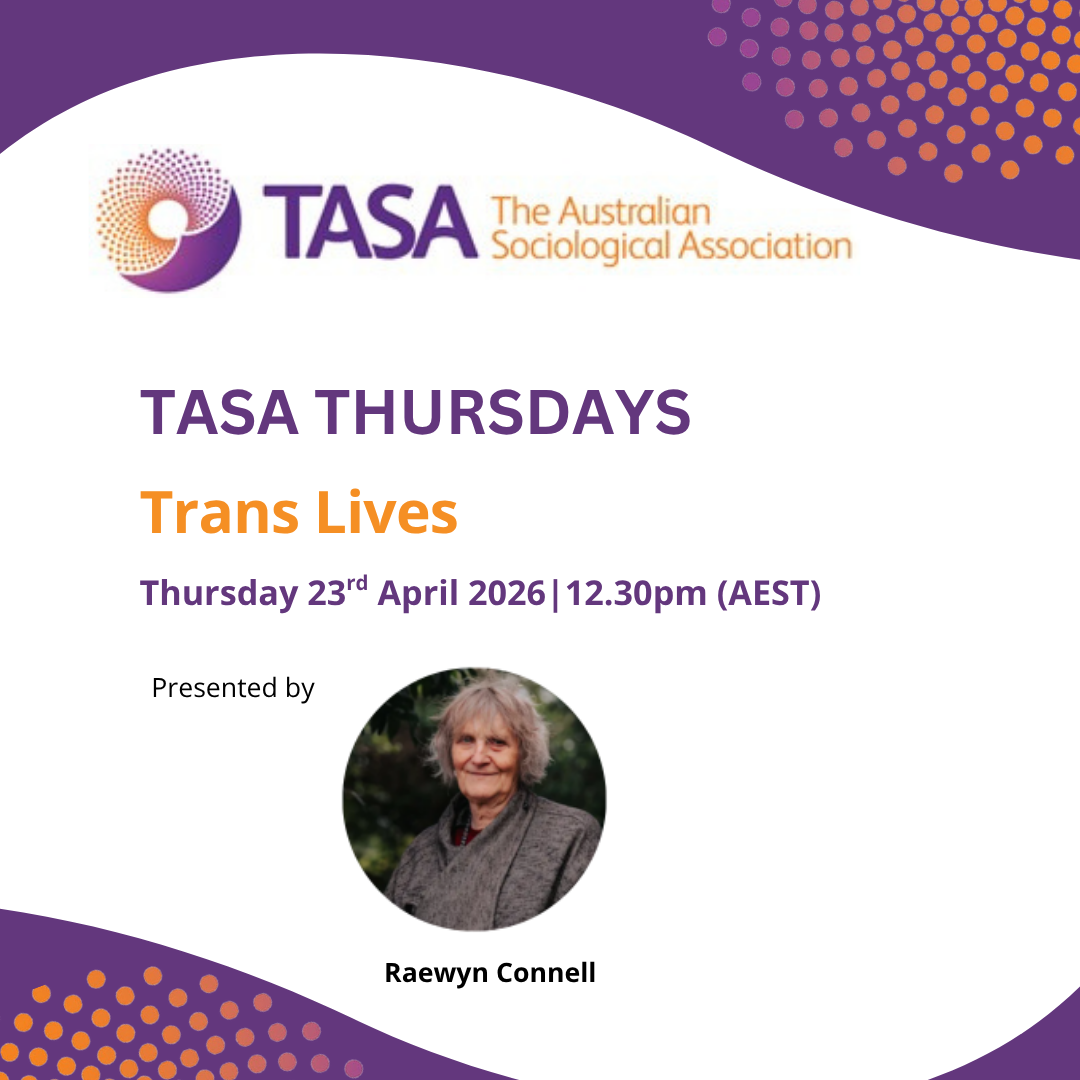 This edition also features an upcoming TASA Thursdays event with Raewyn Connell, who will discuss their new book Trans Lives, as well as a new masterclass in the Postgraduate Sociology of What? series. Applications are now open for the 2026 Career Development Grant, alongside a range of member publications, calls for submissions for upcoming special issues of the Journal of Sociology and Health Sociology Review, thematic groups' news and events, and new job and PhD scholarship opportunities.
