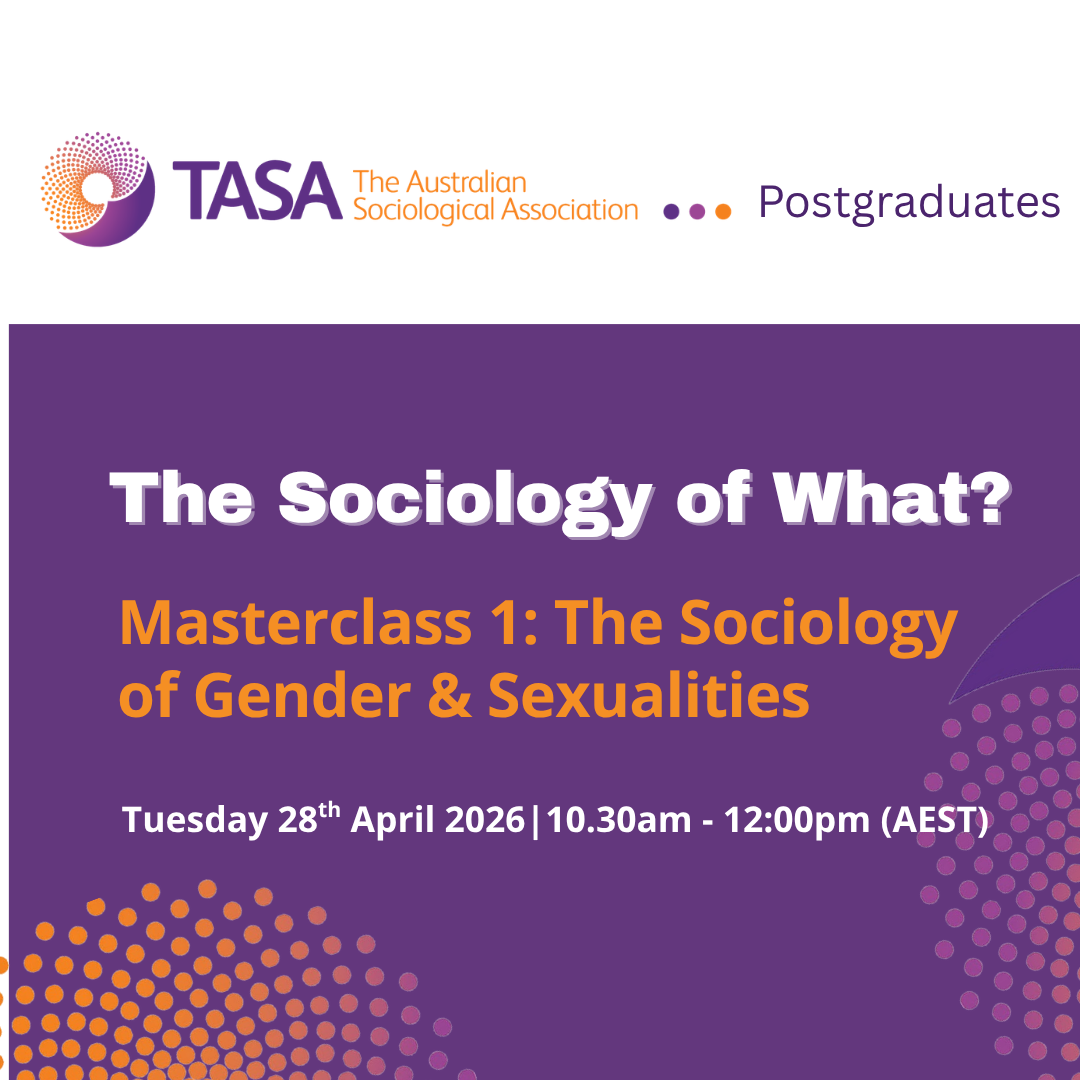 Join us for an interactive online masterclass as part of our TASA Postgraduates 2026 Sociology of What? series. Led by fellow members Lucy Nicholas and Rosie Clare Shorter, this session explores the sociology of gender and sexualities through collaborative, hands-on learning.